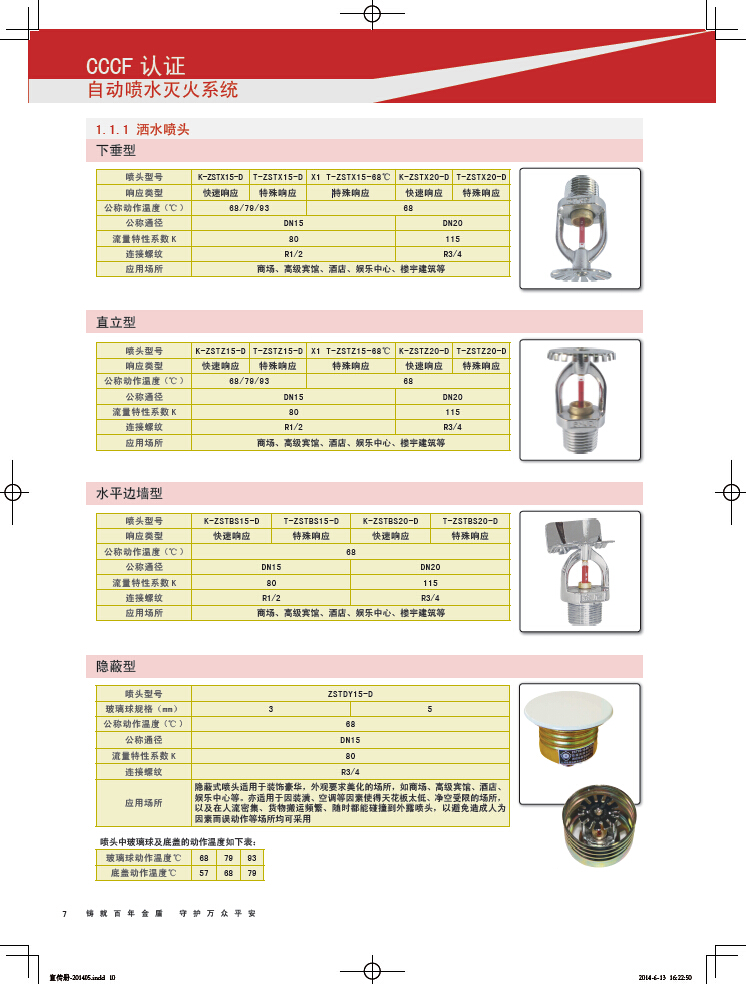 早期抑制快速響應(ESFR)噴頭:(下垂型、直立型)